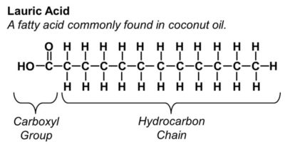 Figure 1. An example of a FA – specifically a saturated FA. More specifically, Lauric acid. Note the carboxyl group is what makes it potentially acidic.