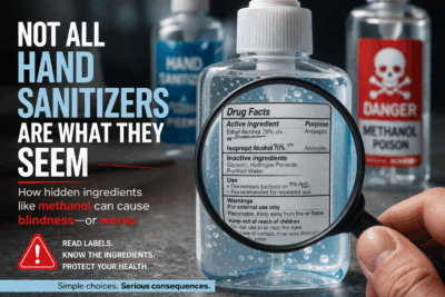 Unfortunately, there have been cases where individuals—both children and adults—ingested hand sanitizer under the assumption that it contained ethanol, only to later discover it contained methanol or was contaminated with it.1